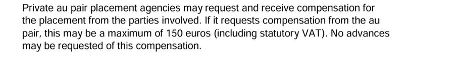 Der An diese Verordnung aus §12 BeschV halten sich nur die wenigsten privaten Vermittler und es ist nicht möglich, dies zu überprüfen oder gar zu überwachen. Daher sind private Vermittler generell von einer Zusammenarbeit ausgeschlossen. Auch geht es den meisten privaten Vermittlern nicht um den kulturellen Austausch, eher um eine lukrative Vermittlung - dies oftmals zum Schaden des wertvollen Au Pair- Programms und dem Ansehen einzelner Nationen.